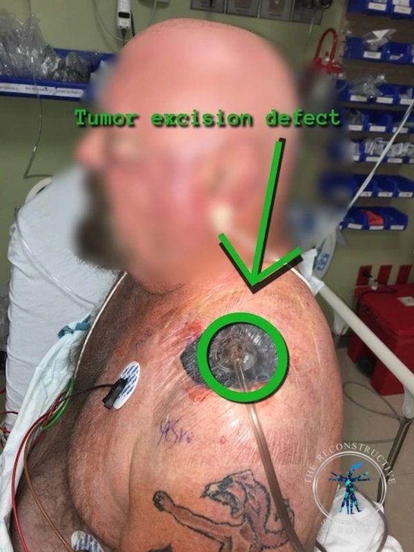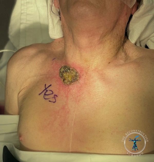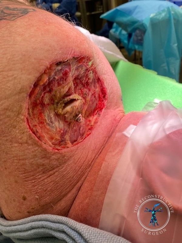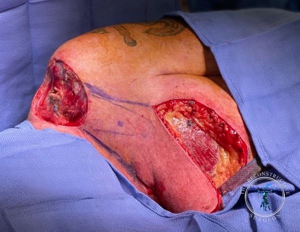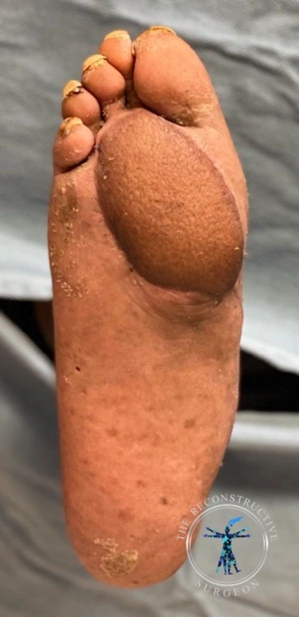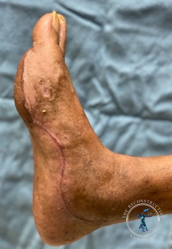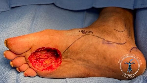 Removal of the squamous cell carcinoma leaves quite a hole in the foot. This would not heal without reconstructive surgery.