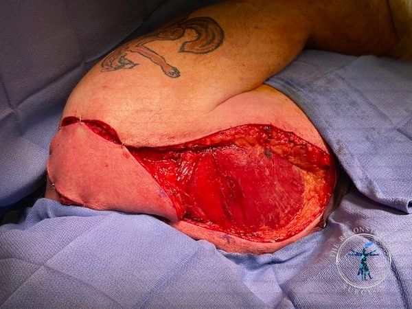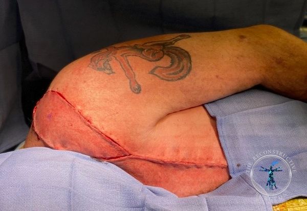 Here, tissue from the back with thick skin is transferred to the foot to give the patient durable skin for weight bearing