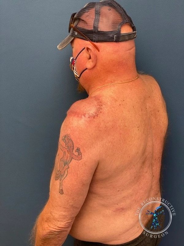Healed appearance of scalp reconstruction at 4 months. The scars are not noticeable within the hair