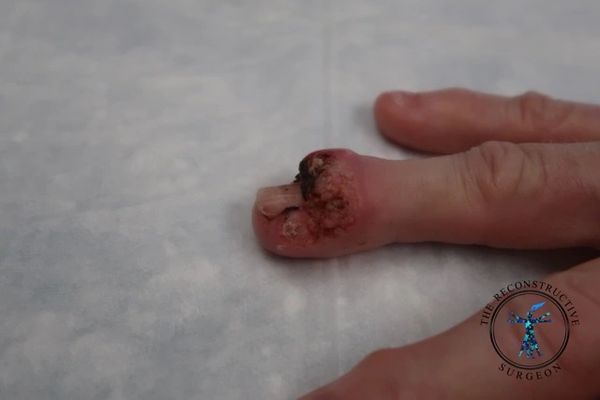 This is an invasive and potentially deadly skin cancer (squamous cell carcinoma) that must be treated with finger amputation.
