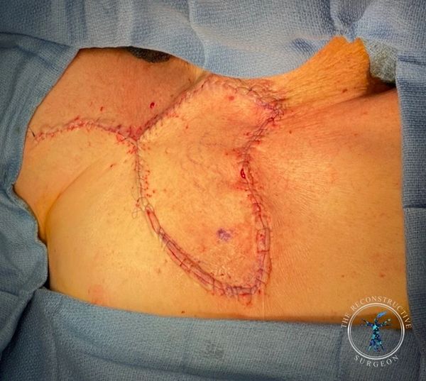 On table appearance of cervicofacial flap closure for cheek reconstruction